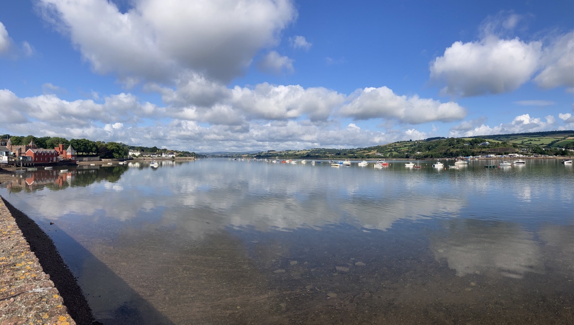 Designed by talented local designer Tim Starkey, our logo shows the estuary of the river, looking towards Dartmoor and its source. With local landmarks, and the distinctive outline of Haytor, it reflects a hopeful, positive image of the river that we all love and wish to thrive.